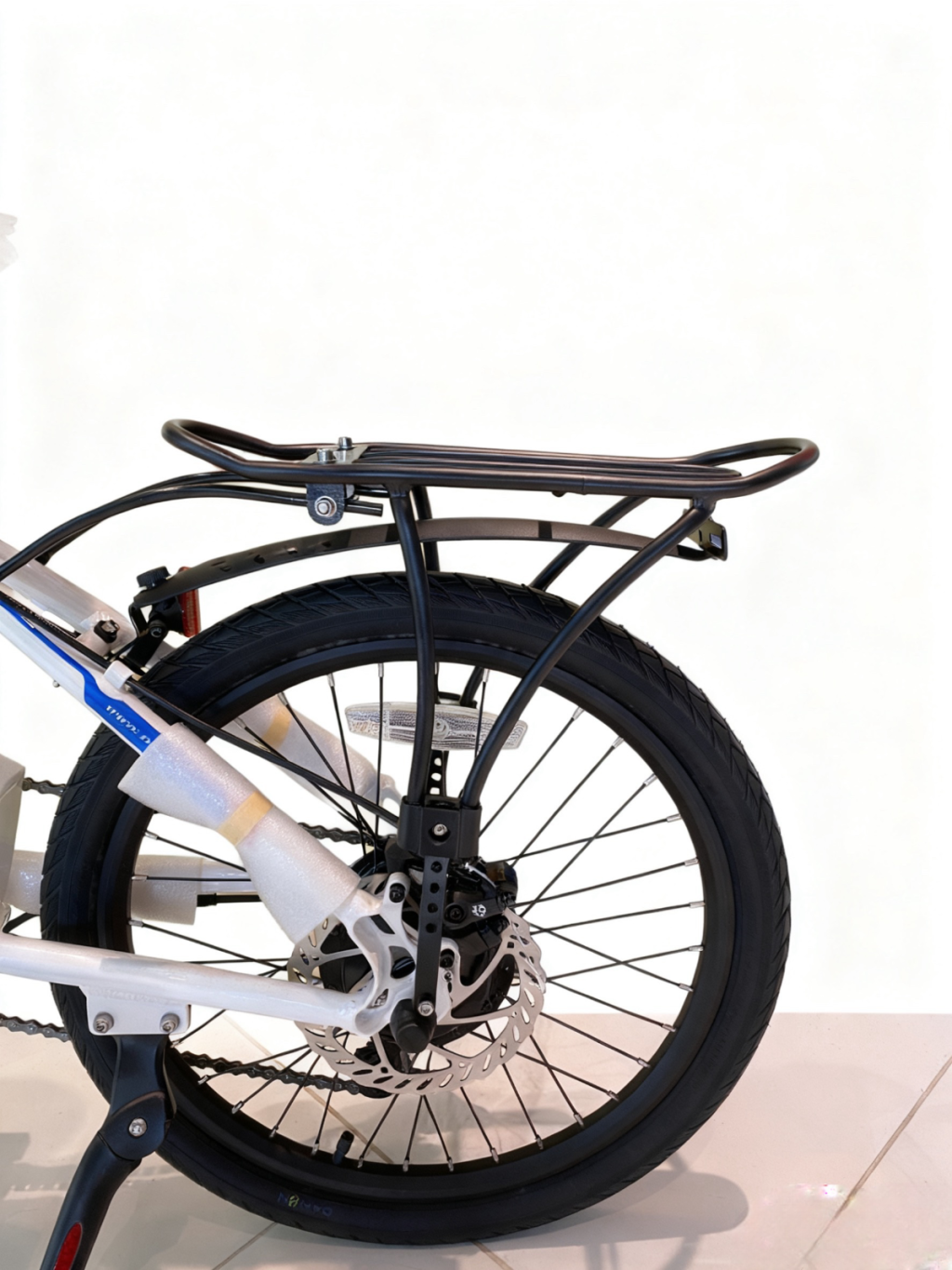 ●車架 : 20吋鋁合金折疊車架、高强度碳鋼前叉